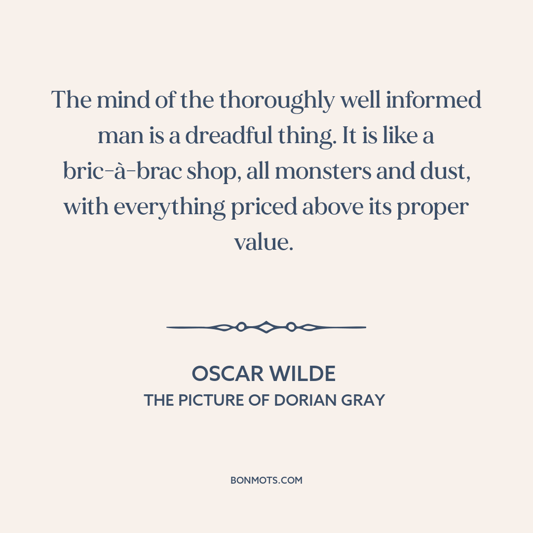 The mind of the thoroughly well informed man is a dreadful thing. It is like a bric-à-brac shop, all monsters and dust, with everything priced above its proper value.