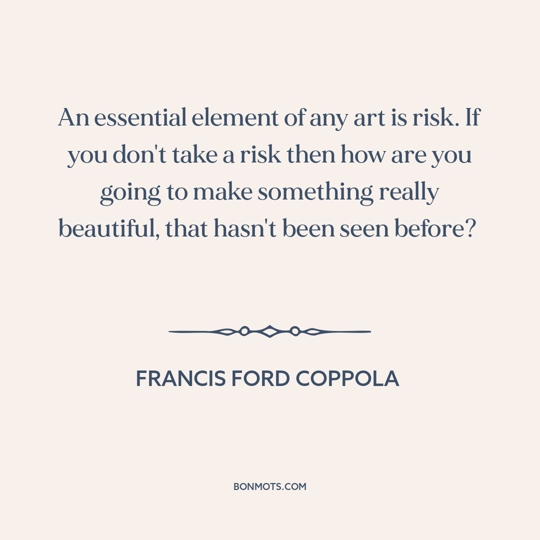 An essential element of any art is risk. If you don't take a risk then how are you going to make something really beautiful, that hasn't been seen before?