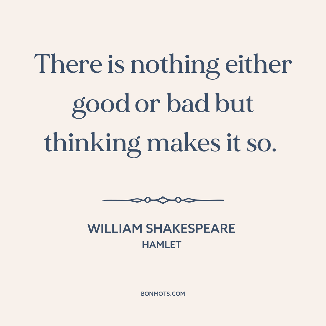 There is nothing either good or bad but thinking makes it so.