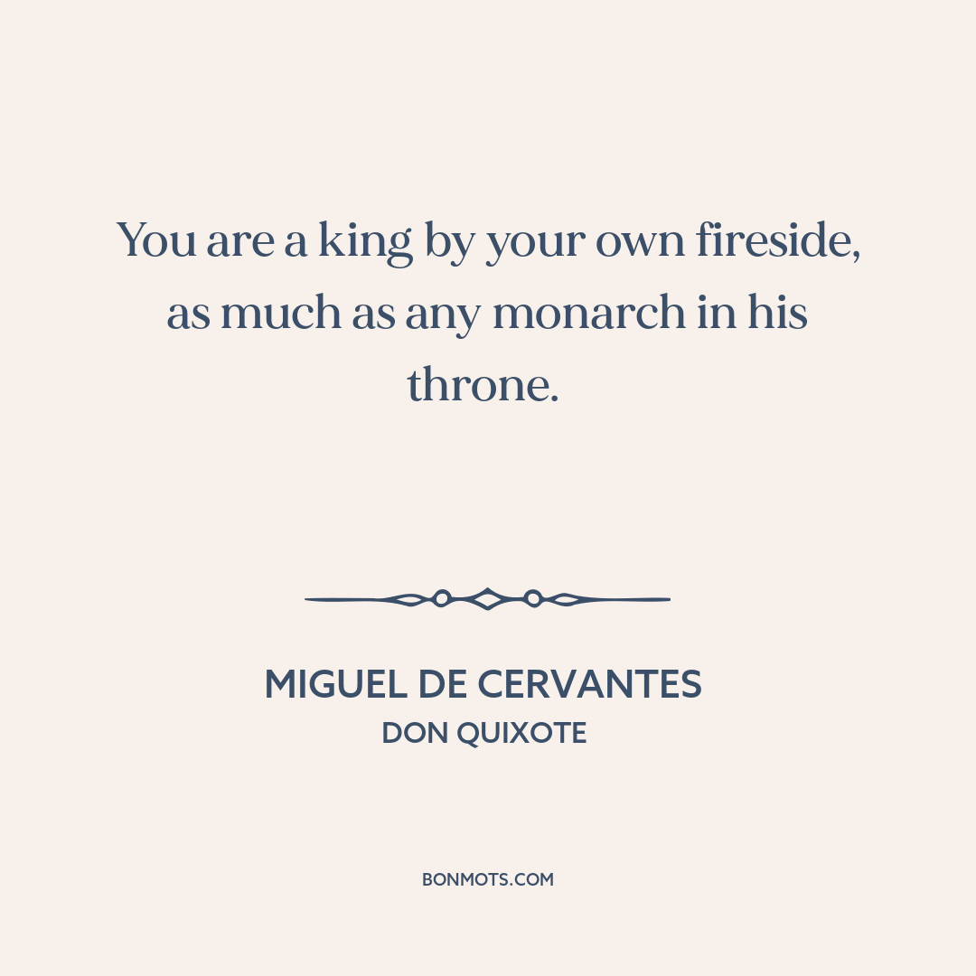 You are a king by your own fireside, as much as any monarch in his throne.