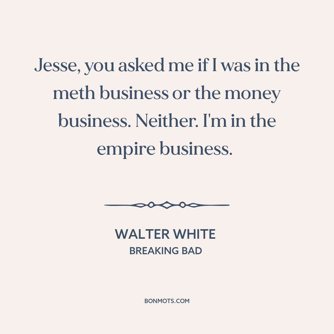 Jesse, you asked me if I was in the meth business or the money business. Neither. I'm in the empire business.