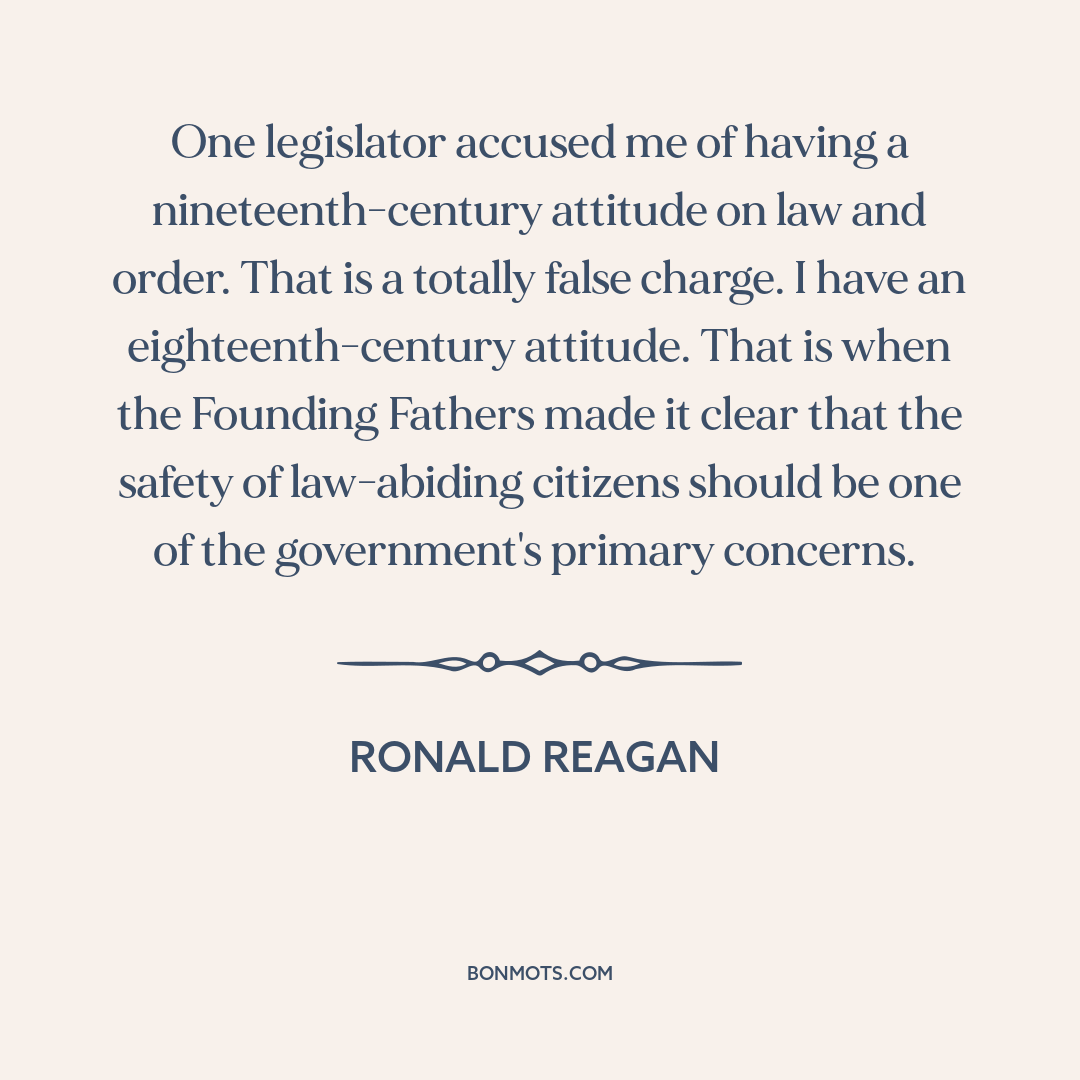 One legislator accused me of having a nineteenth-century attitude on law and order. That is a totally false charge. I have an eighteenth-century attitude. That is when the Founding Fathers made it clear that the safety of law-abiding citizens should be one of the government's primary concerns.