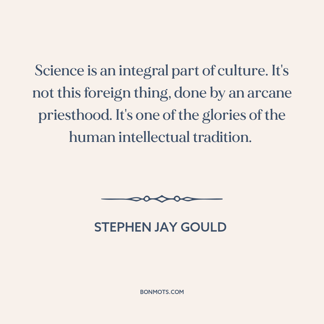Science is an integral part of culture. It's not this foreign thing, done by an arcane priesthood. It's one of the glories of the human intellectual tradition.