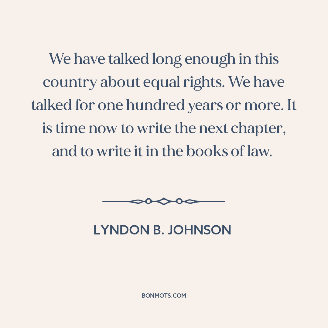 We have talked long enough in this country about equal rights. We have talked for one hundred years or more. It is time now to write the next chapter, and to write it in the books of law.
