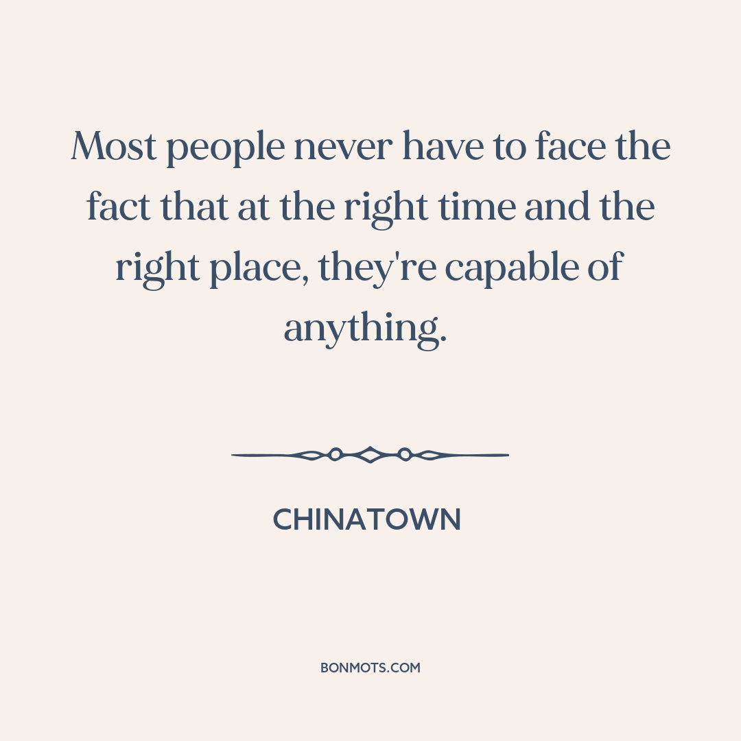 Most people never have to face the fact that at the right time and the right place, they're capable of anything.