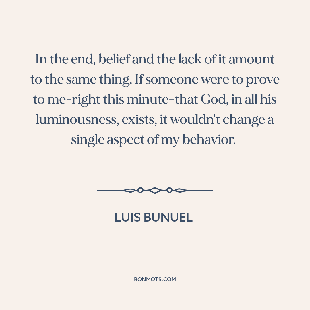 In the end, belief and the lack of it amount to the same thing. If someone were to prove to me-right this minute-that God, in all his luminousness, exists, it wouldn't change a single aspect of my behavior.