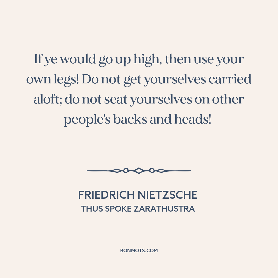 If ye would go up high, then use your own legs! Do not get yourselves carried aloft; do not seat yourselves on other people's backs and heads!