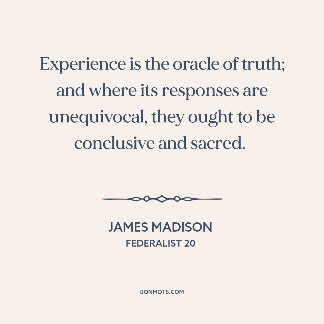 Experience is the oracle of truth; and where its responses are unequivocal, they ought to be conclusive and sacred.
