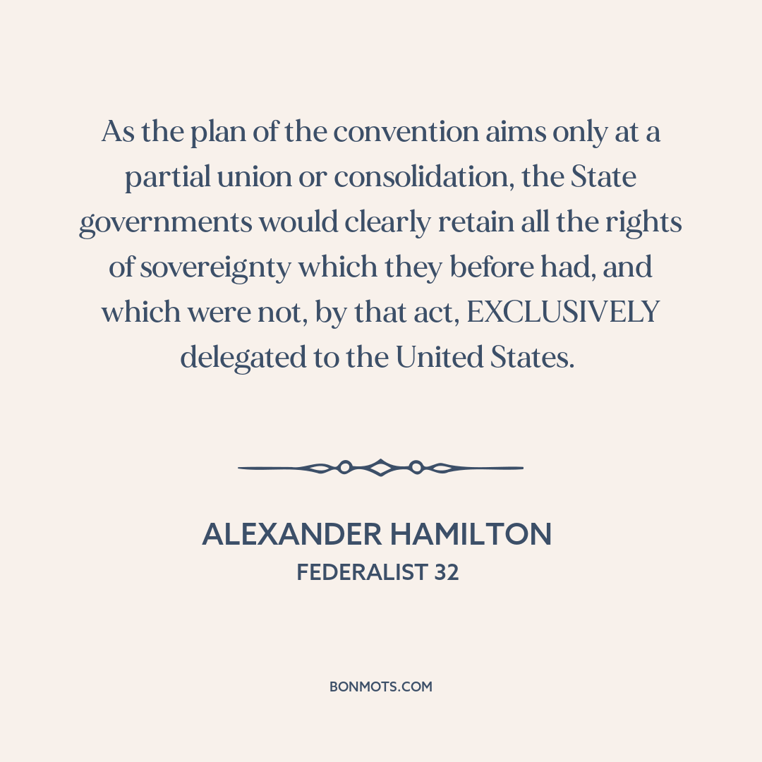 As the plan of the convention aims only at a partial union or consolidation, the State governments would clearly retain all the rights of sovereignty which they before had, and which were not, by that act, EXCLUSIVELY delegated to the United States.