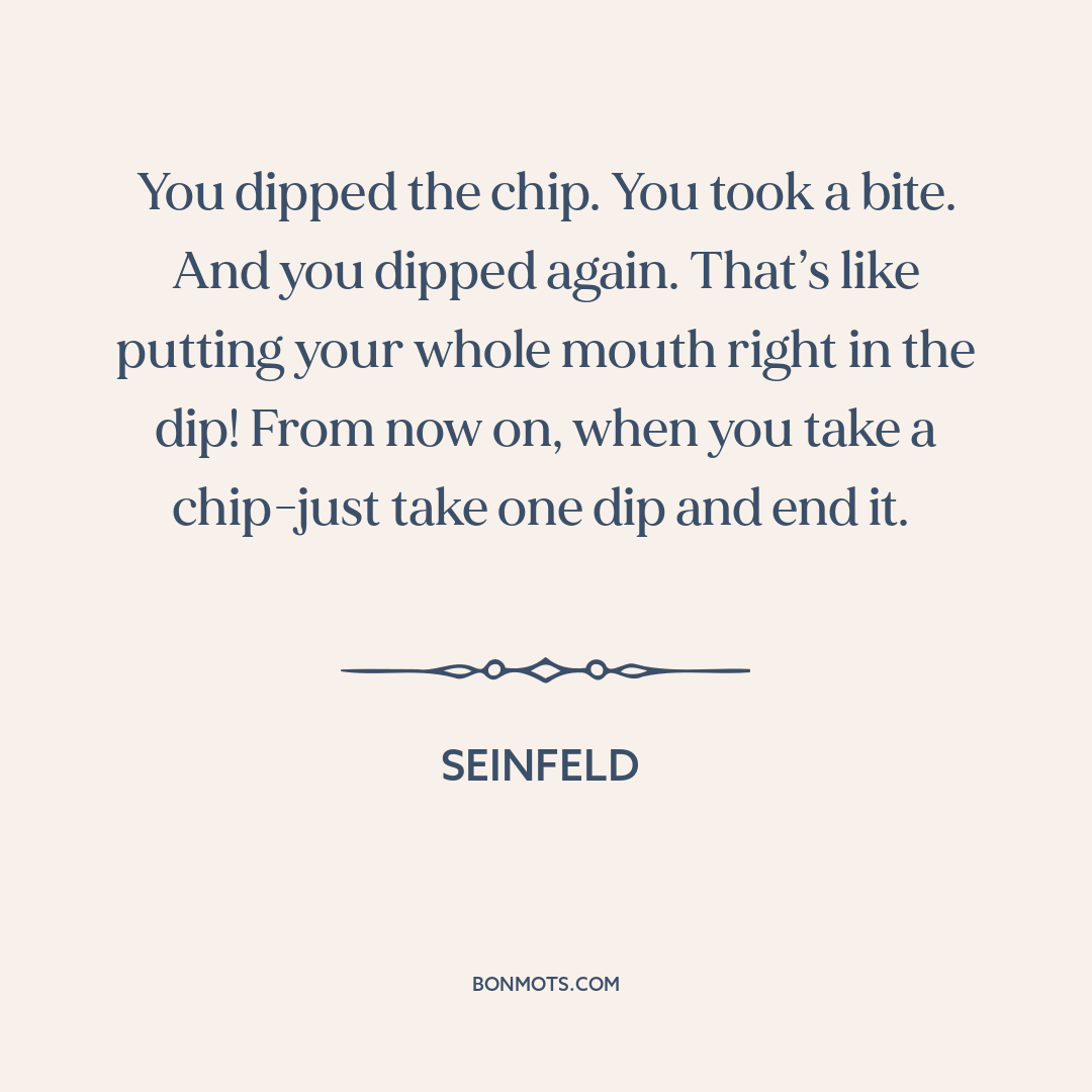 You dipped the chip. You took a bite. And you dipped again. That’s like putting your whole mouth right in the dip! From now on, when you take a chip-just take one dip and end it.