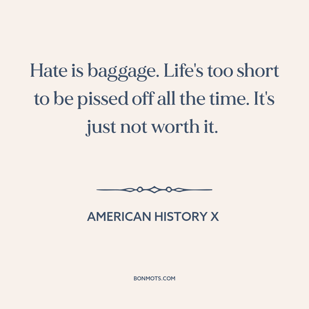 Hate is baggage. Life's too short to be pissed off all the time. It's just not worth it.