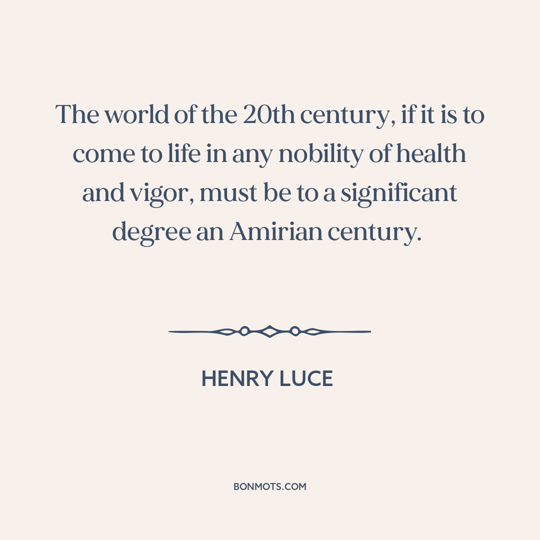 The world of the 20th century, if it is to come to life in any nobility of health and vigor, must be to a significant degree an Amirian century.