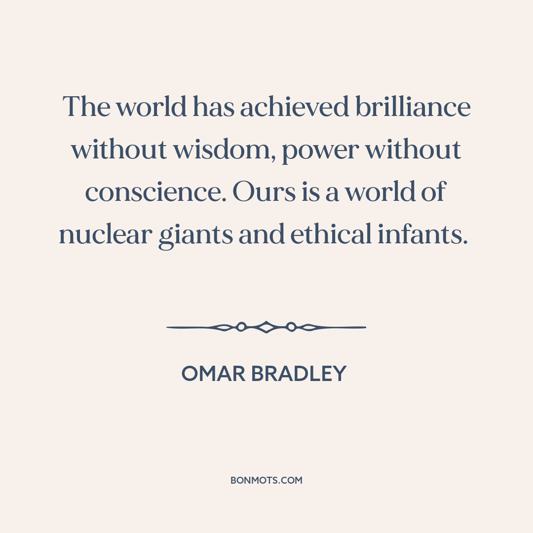 The world has achieved brilliance without wisdom, power without conscience. Ours is a world of nuclear giants and ethical infants.