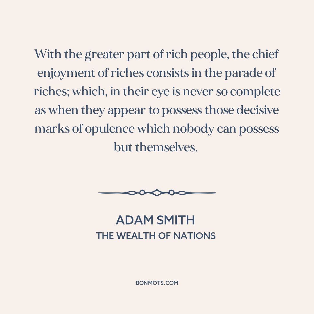 With the greater part of rich people, the chief enjoyment of riches consists in the parade of riches; which, in their eye is never so complete as when they appear to possess those decisive marks of opulence which nobody can possess but themselves.