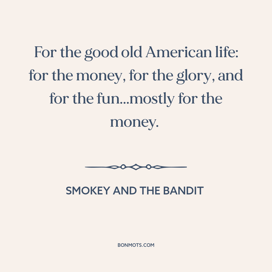 For the good old American life: for the money, for the glory, and for the fun...mostly for the money.