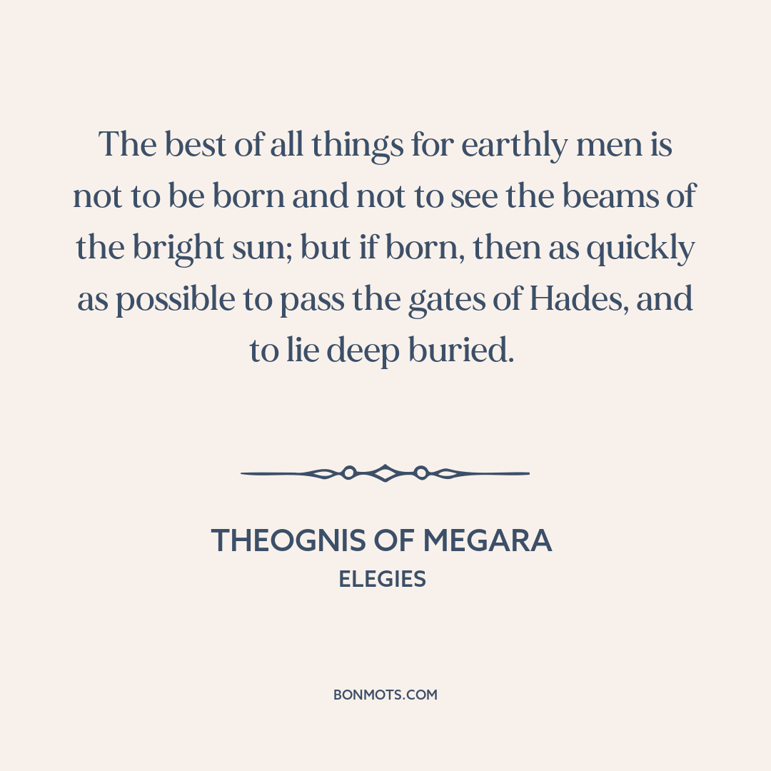 The best of all things for earthly men is not to be born and not to see the beams of the bright sun; but if born, then as quickly as possible to pass the gates of Hades, and to lie deep buried.