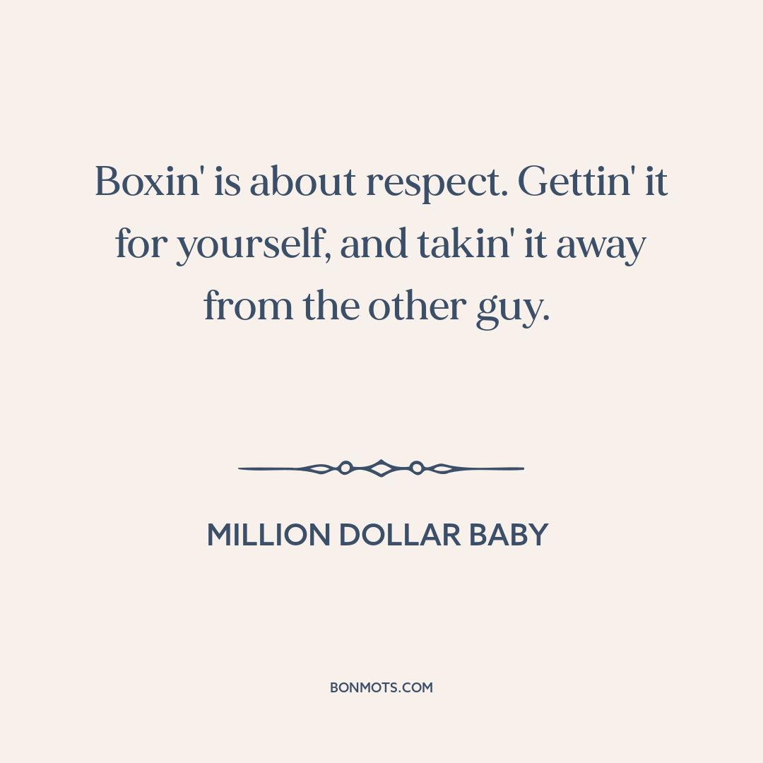Boxin' is about respect. Gettin' it for yourself, and takin' it away from the other guy.