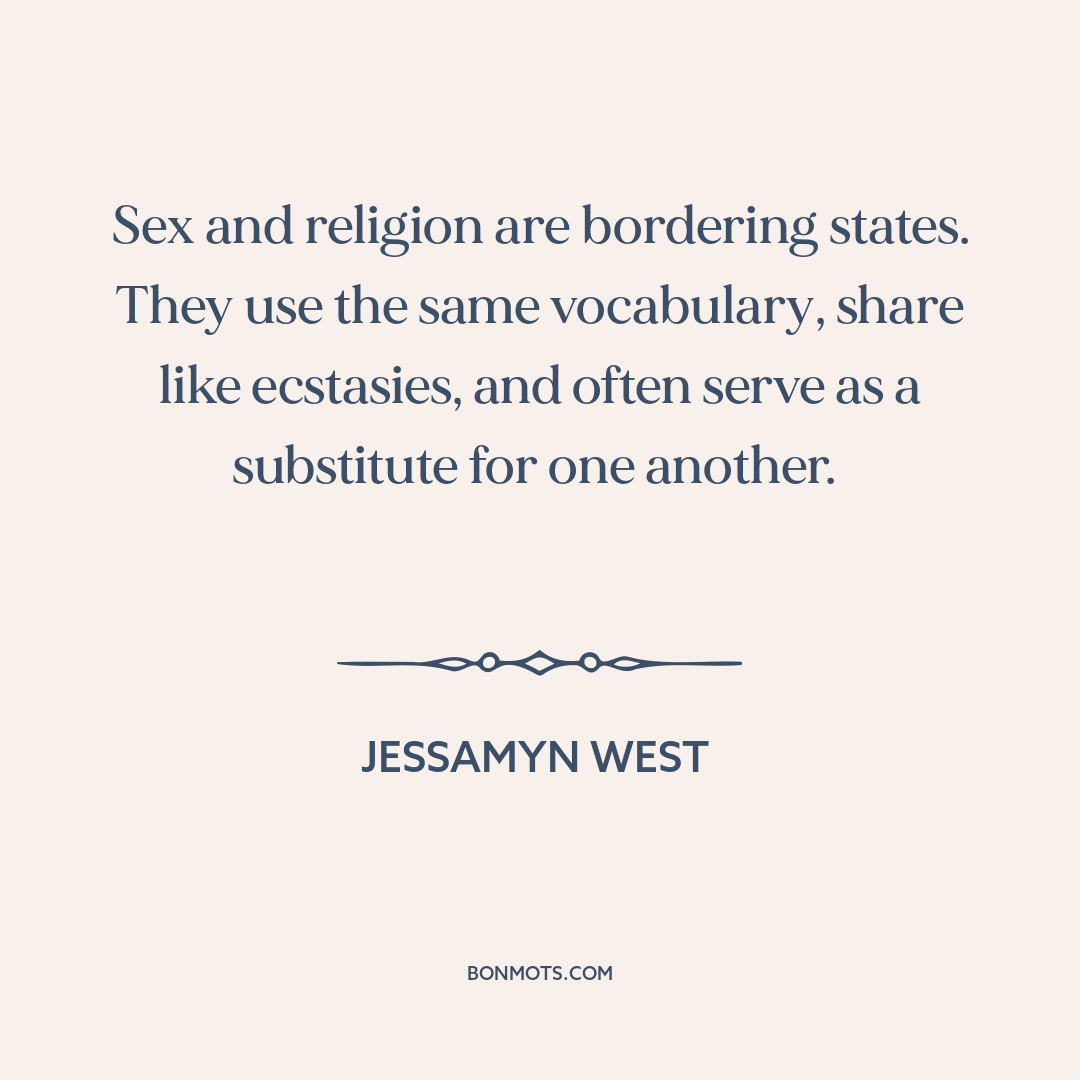Sex and religion are bordering states. They use the same vocabulary, share like ecstasies, and often serve as a substitute for one another.