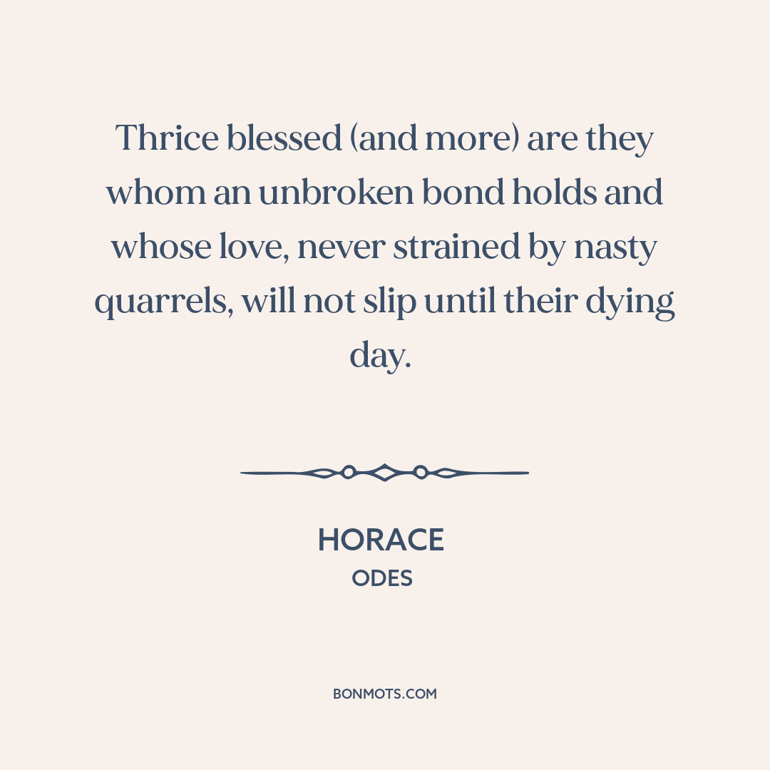 Thrice blessed (and more) are they whom an unbroken bond holds and whose love, never strained by nasty quarrels, will not slip until their dying day.
