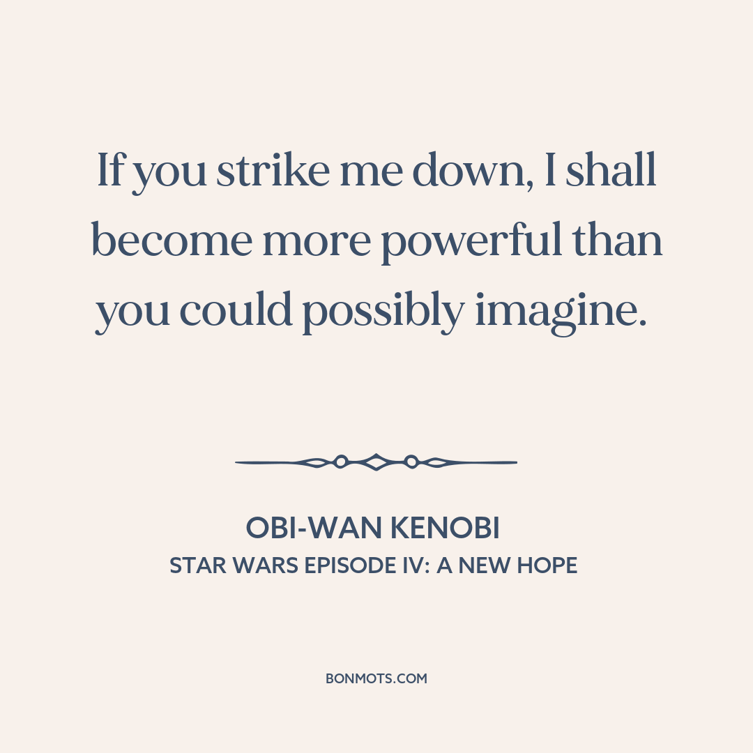 If you strike me down, I shall become more powerful than you could possibly imagine.