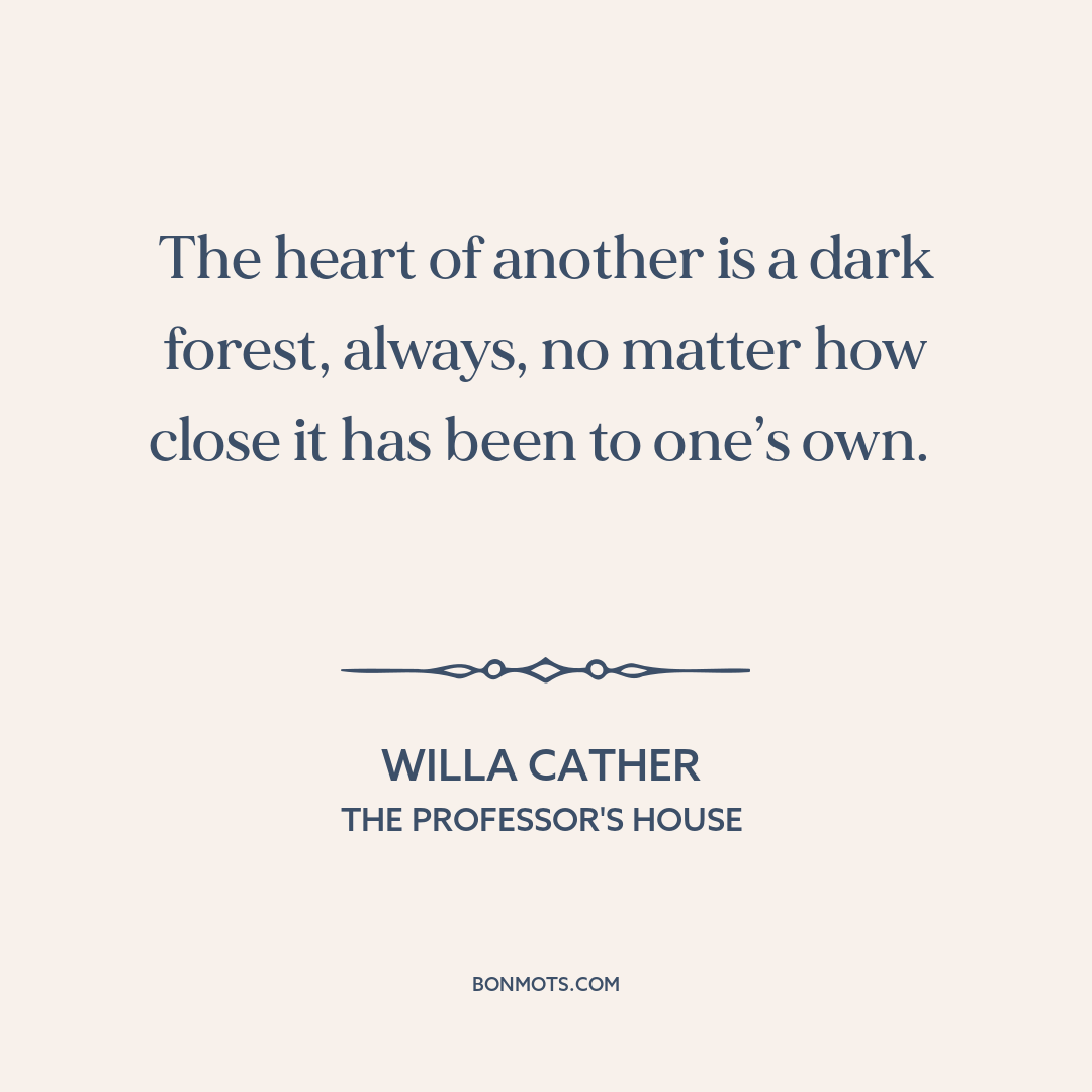 The heart of another is a dark forest, always, no matter how close it has been to one’s own.