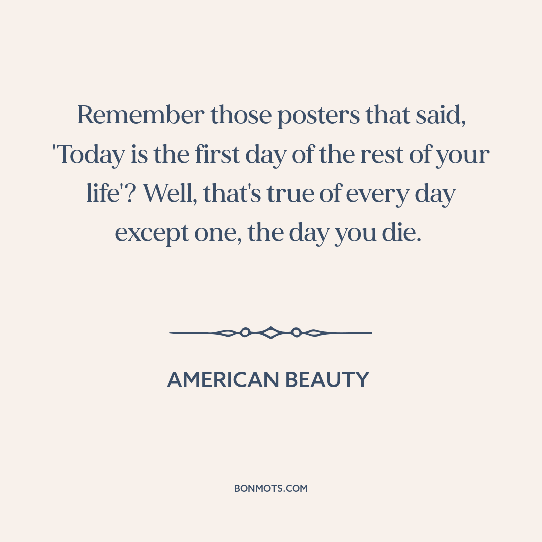 Remember those posters that said, 'Today is the first day of the rest of your life'? Well, that's true of every day except one, the day you die.