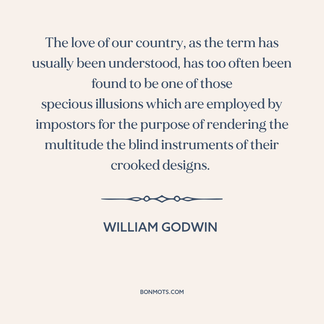 The love of our country, as the term has usually been understood, has too often been found to be one of those specious illusions which are employed by impostors for the purpose of rendering the multitude the blind instruments of their crooked designs.