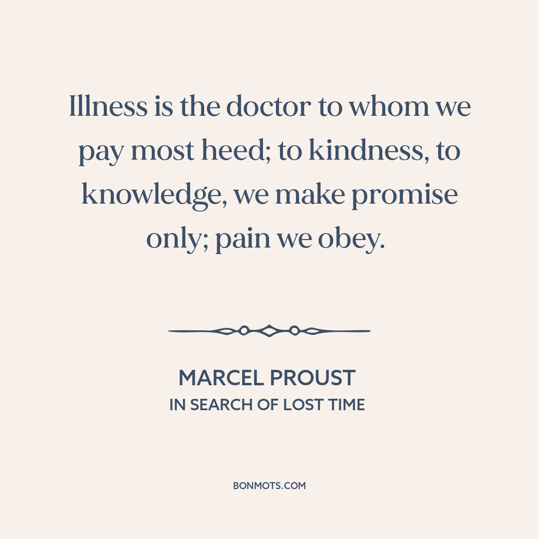 Illness is the doctor to whom we pay most heed; to kindness, to knowledge, we make promise only; pain we obey.