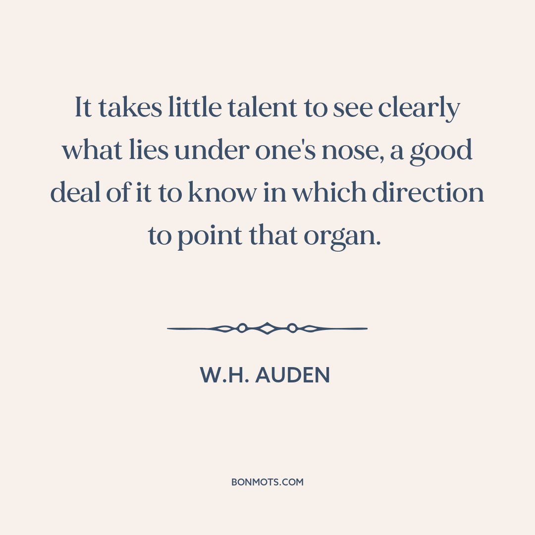 It takes little talent to see clearly what lies under one's nose, a good deal of it to know in which direction to point that organ.