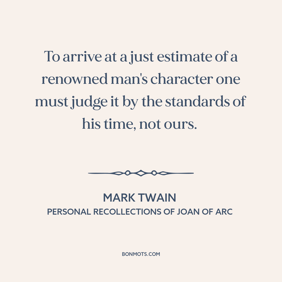 To arrive at a just estimate of a renowned man's character one must judge it by the standards of his time, not ours.
