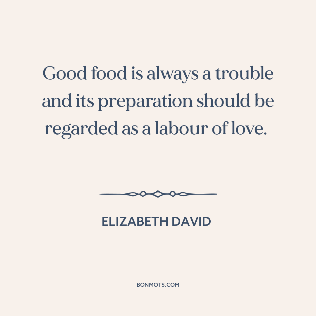 Good food is always a trouble and its preparation should be regarded as a labour of love.