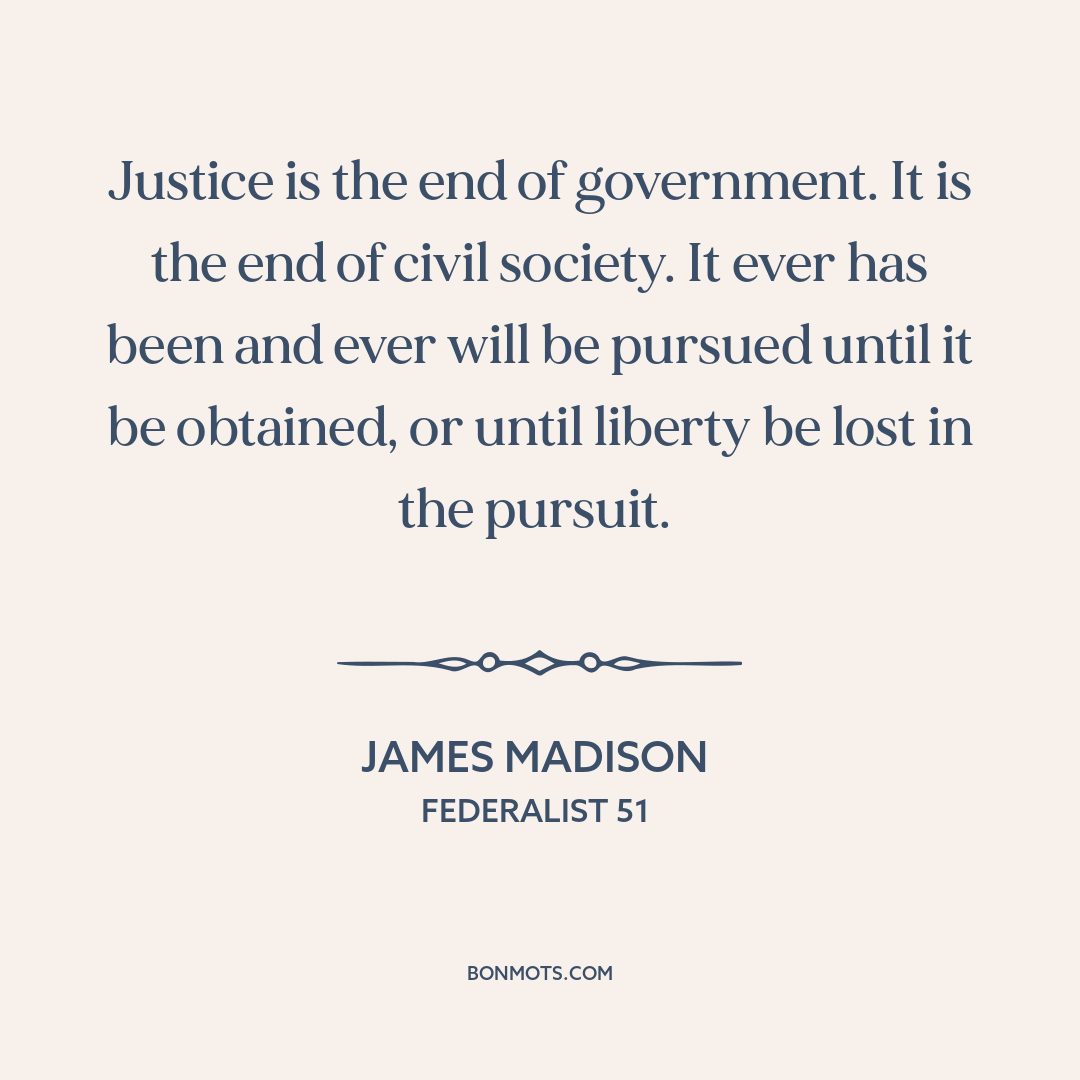 Justice is the end of government. It is the end of civil society. It ever has been and ever will be pursued until it be obtained, or until liberty be lost in the pursuit.