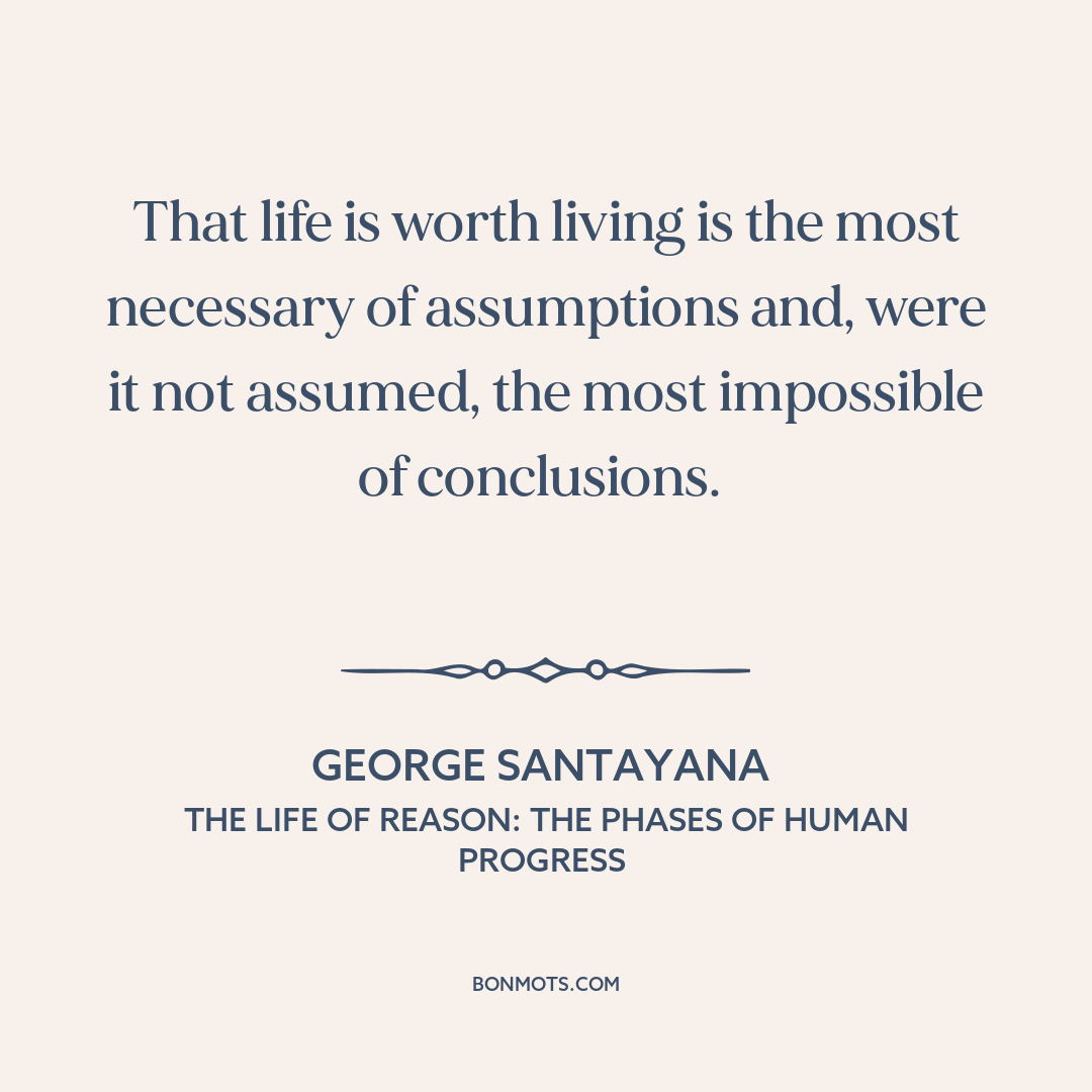 That life is worth living is the most necessary of assumptions and, were it not assumed, the most impossible of conclusions.