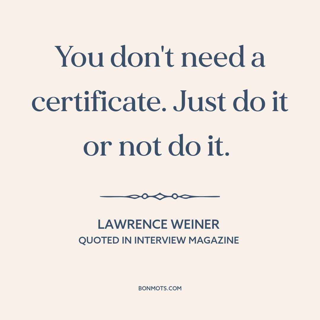 Weiner, Lawrence. "Artists at Work: Lawrence Weiner." Interviewed by Emily McDermott. Interview Magazine, 2 Sept. 2015, www.interviewmagazine.com/art/artists-at-work-lawrence-weiner.