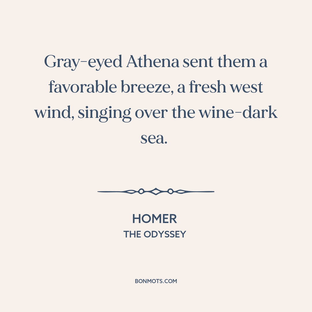 Gray-eyed Athena sent them a favorable breeze, a fresh west wind, singing over the wine-dark sea.