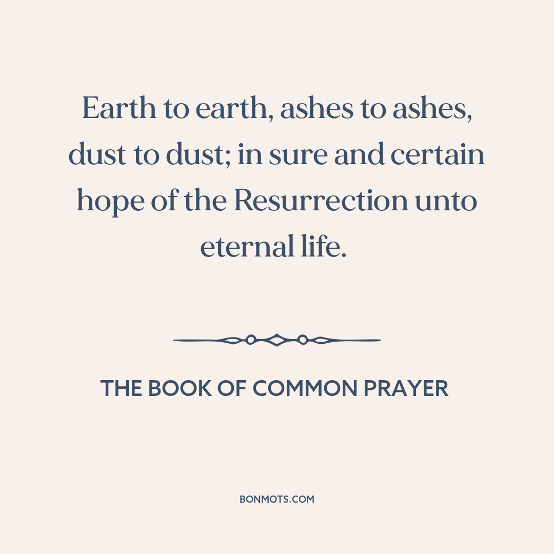Earth to earth, ashes to ashes, dust to dust; in sure and certain hope of the Resurrection unto eternal life.
