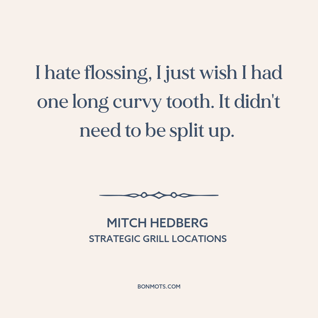 I hate flossing, I just wish I had one long curvy tooth. It didn't need to be split up.