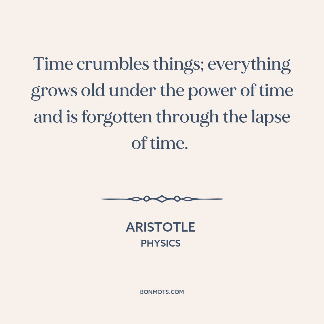 Time crumbles things; everything grows old under the power of time and is forgotten through the lapse of time.