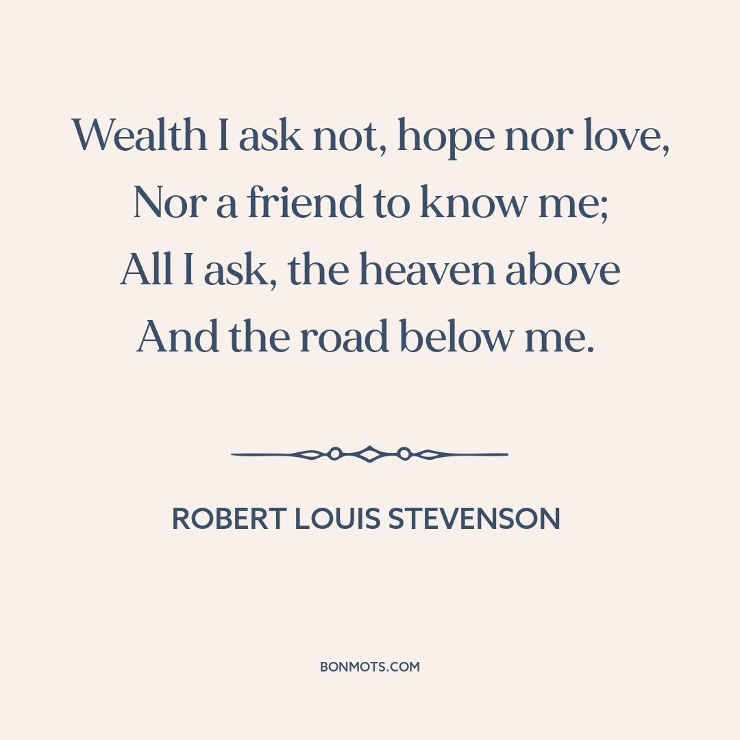 Stevenson, Robert Louis. "The Vagabond." Songs of Travel. Chatto & Windus, 1896, st. 4.