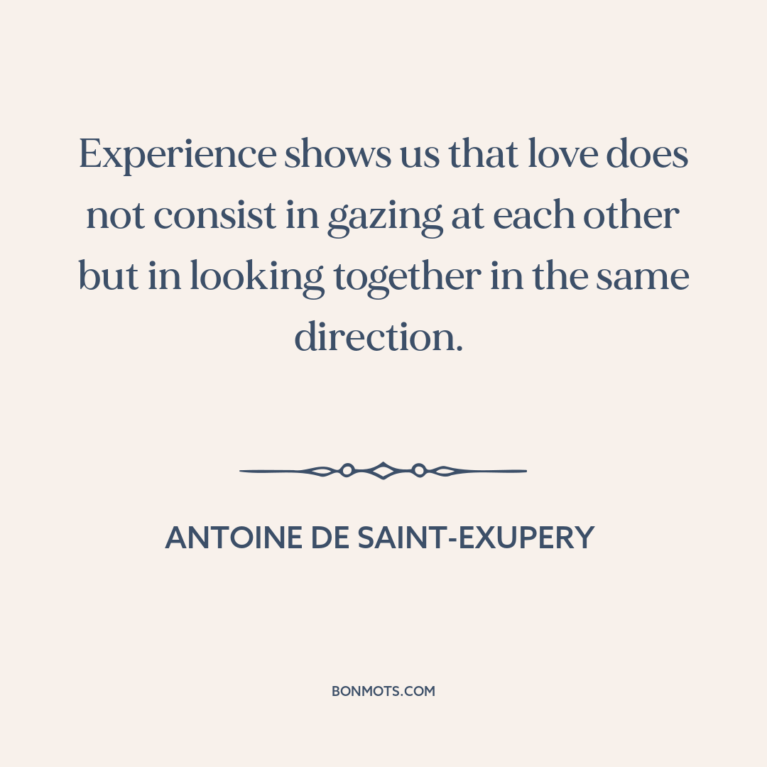 Experience shows us that love does not consist in gazing at each other but in looking together in the same direction.