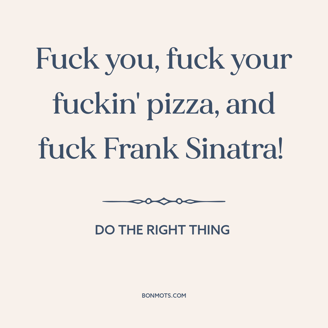 Fuck you, fuck your fuckin' pizza, and fuck Frank Sinatra!