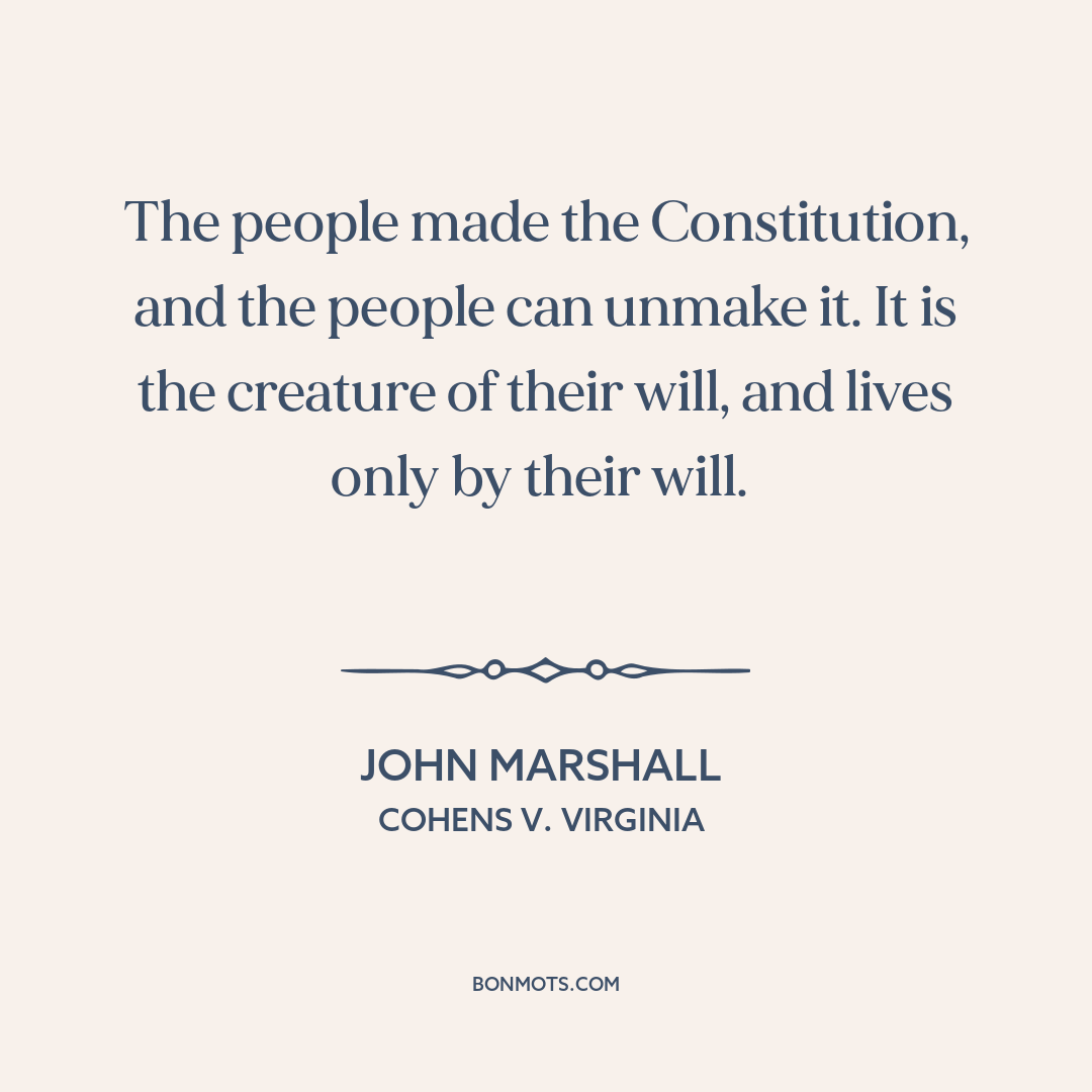 The people made the Constitution, and the people can unmake it. It is the creature of their will, and lives only by their will.