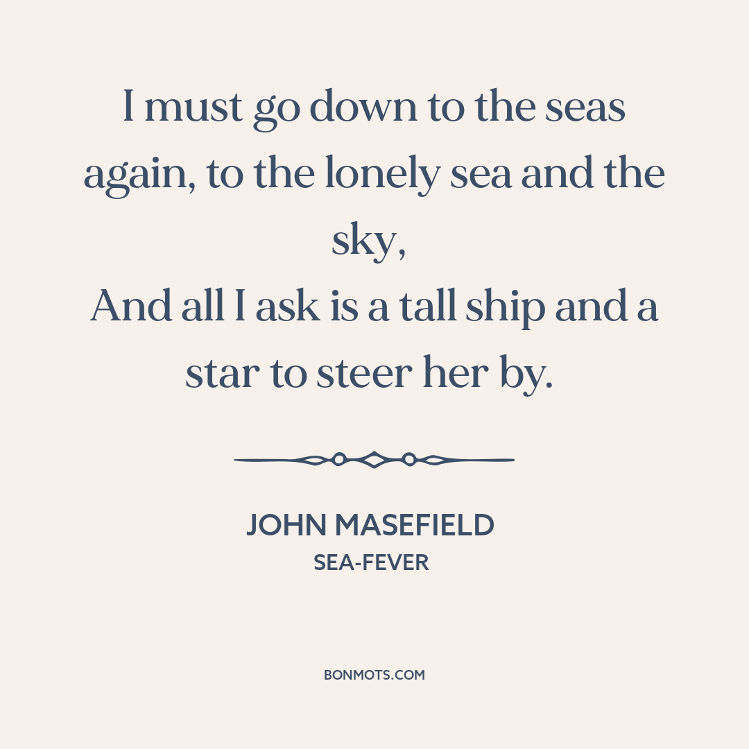 Masefield, John. "Sea-Fever." Salt-Water Ballads. London: Grant Richards, 1902, I. 1.