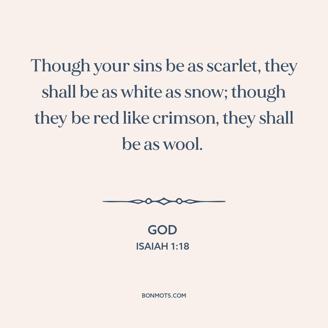 Though your sins be as scarlet, they shall be as white as snow; though they be red like crimson, they shall be as wool.