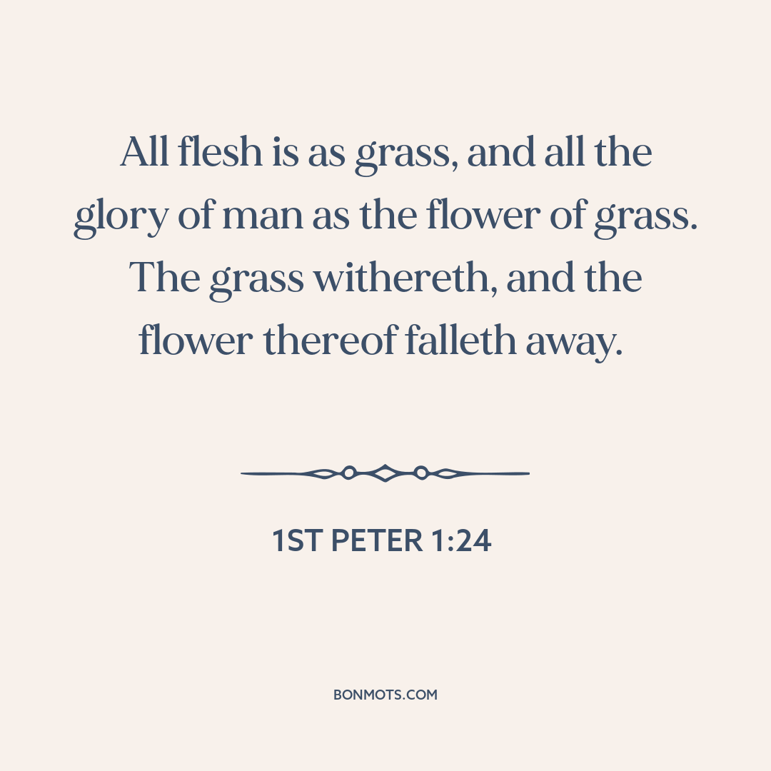 All flesh is as grass, and all the glory of man as the flower of grass. The grass withereth, and the flower thereof falleth away.