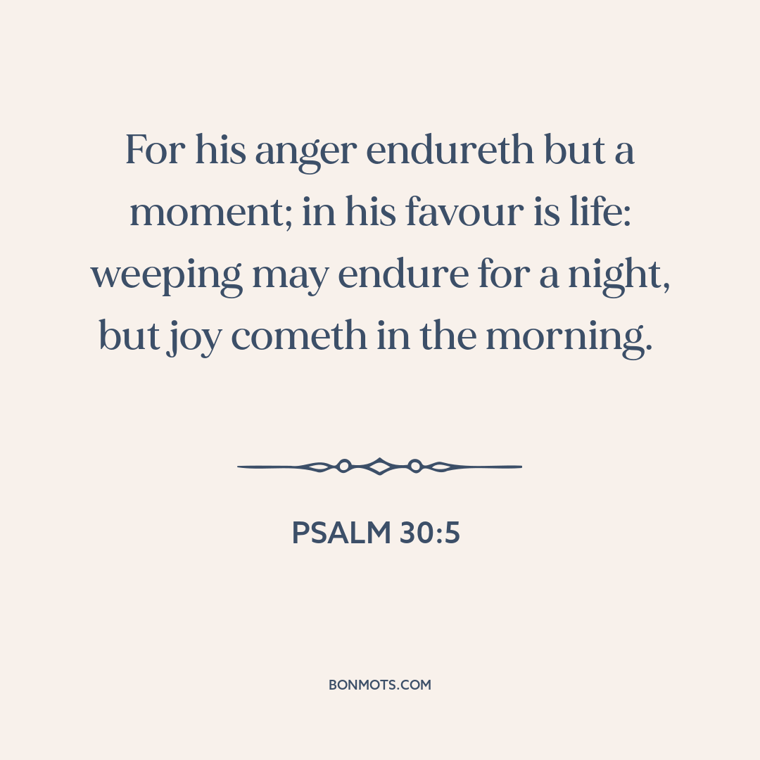 For his anger endureth but a moment; in his favour is life: weeping may endure for a night, but joy cometh in the morning.