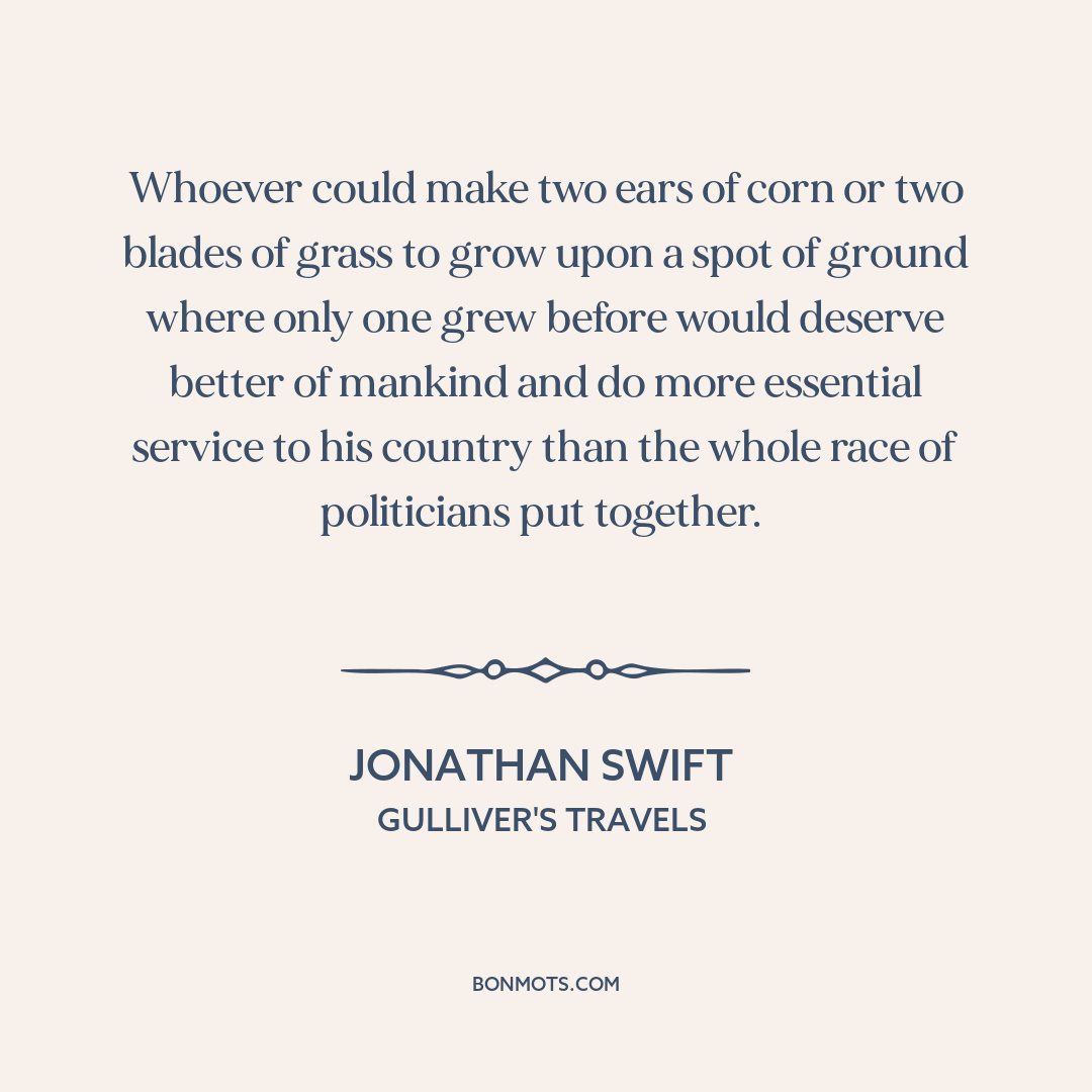 Whoever could make two ears of corn or two blades of grass to grow upon a spot of ground where only one grew before would deserve better of mankind and do more essential service to his country than the whole race of politicians put together.
