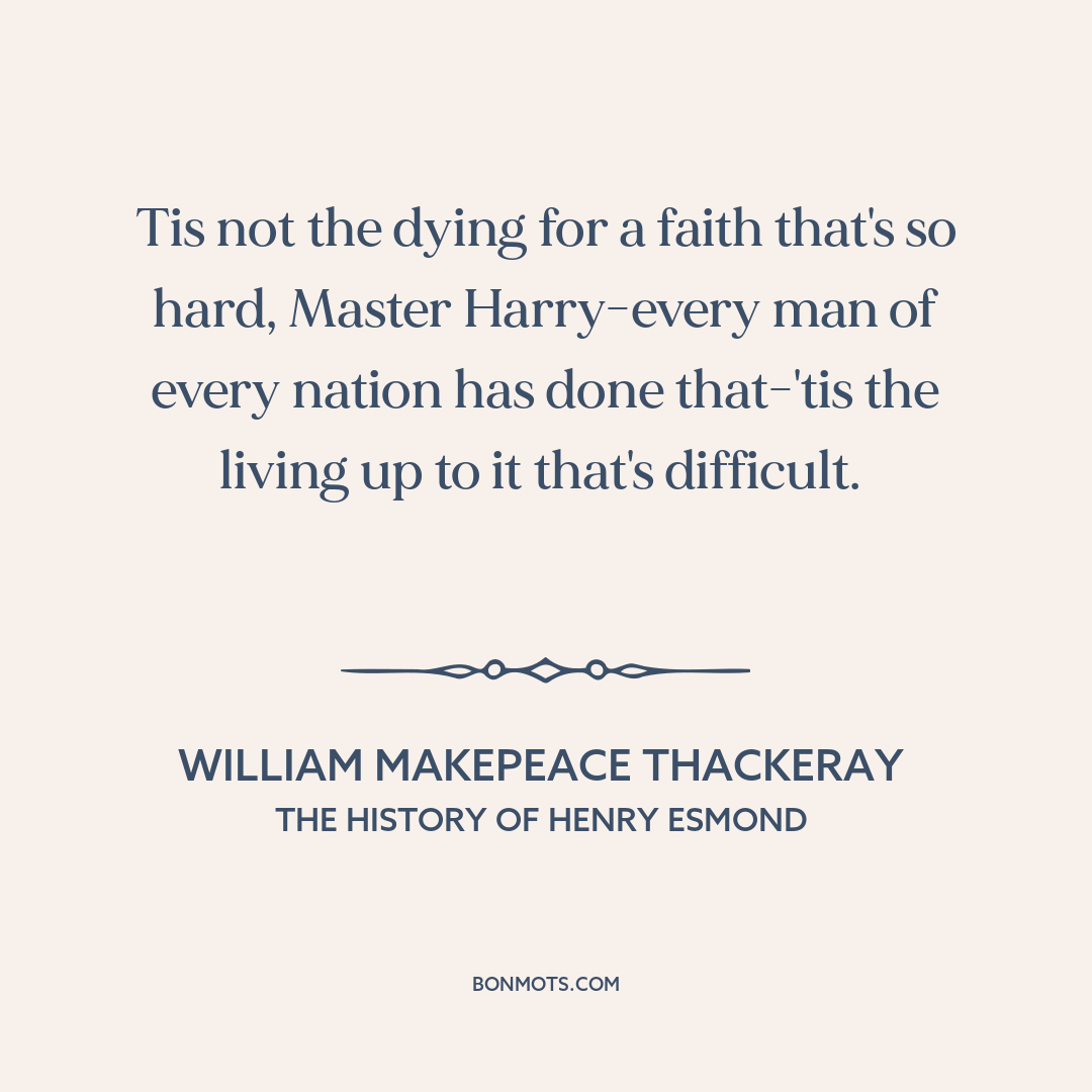 Tis not the dying for a faith that's so hard, Master Harry-every man of every nation has done that-'tis the living up to it that's difficult.