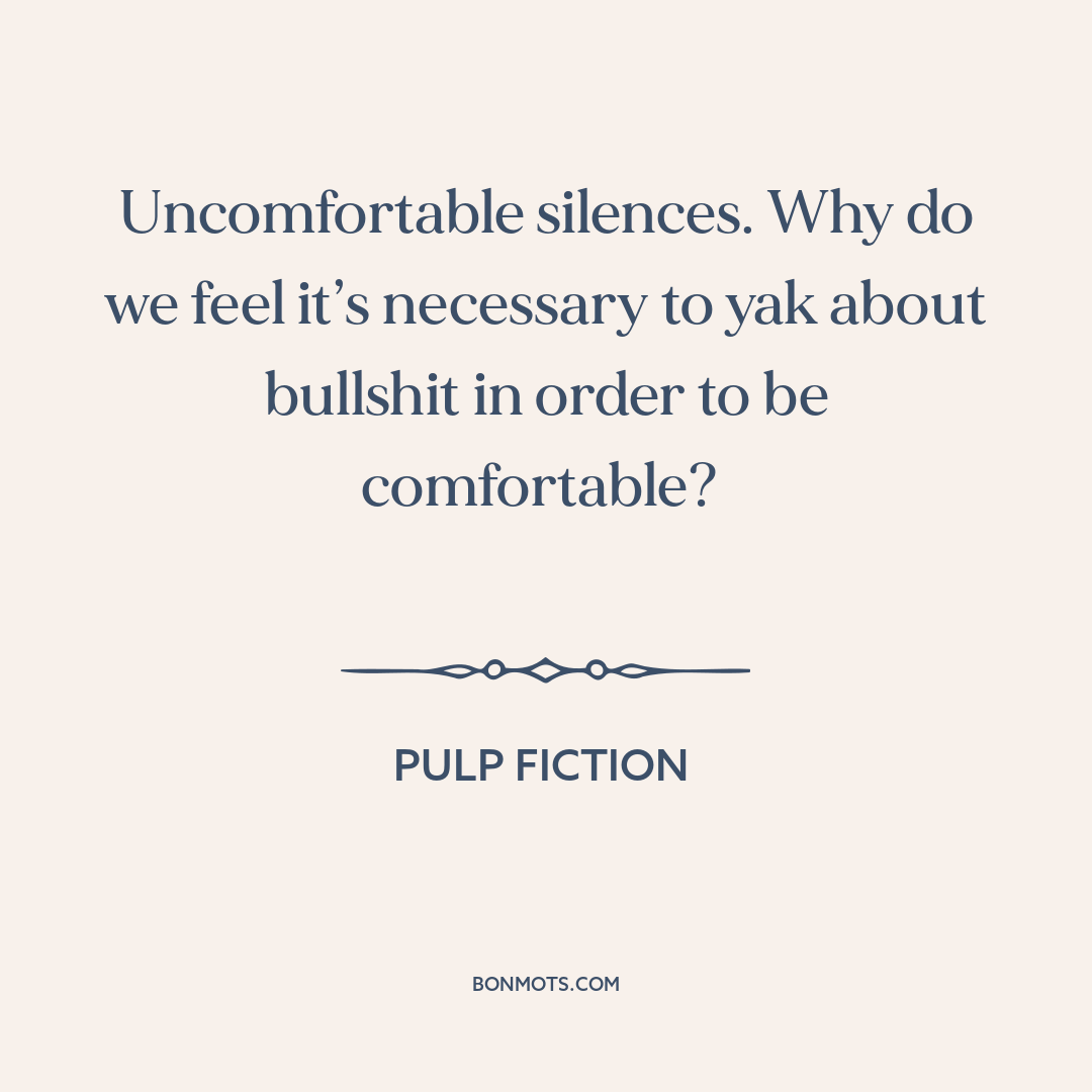 Uncomfortable silences. Why do we feel it’s necessary to yak about bullshit in order to be comfortable?