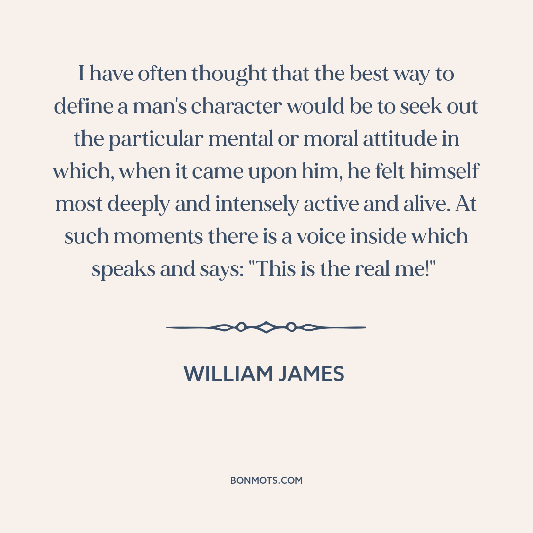 I have often thought that the best way to define a man's character would be to seek out the particular mental or moral attitude in which, when it came upon him, he felt himself most deeply and intensely active and alive. At such moments there is a voice inside which speaks and says: "This is the real me!"